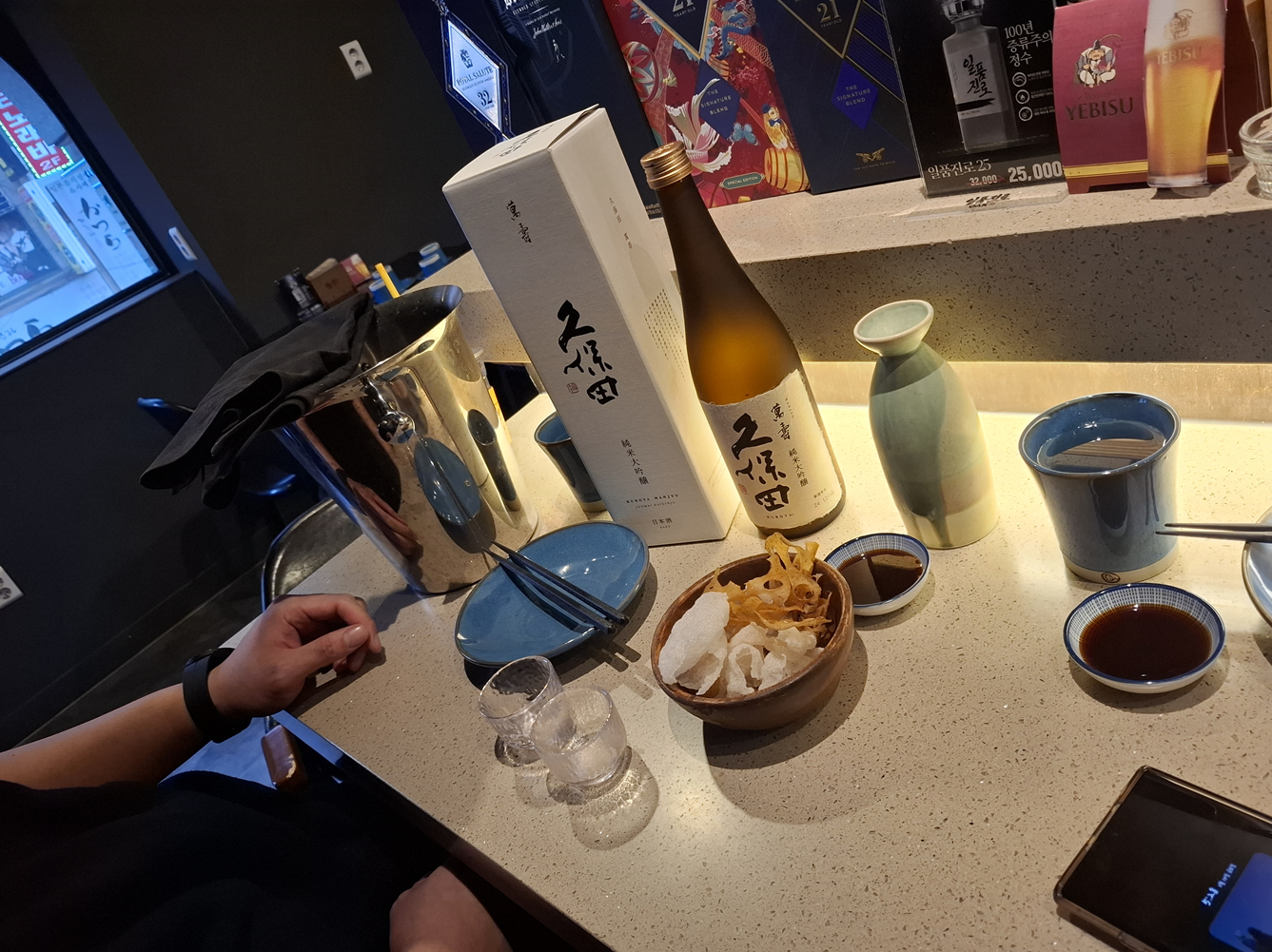 쿠보타만주 사케 한 병을 콜키지 프리 로 가져갈 수 있었어요.