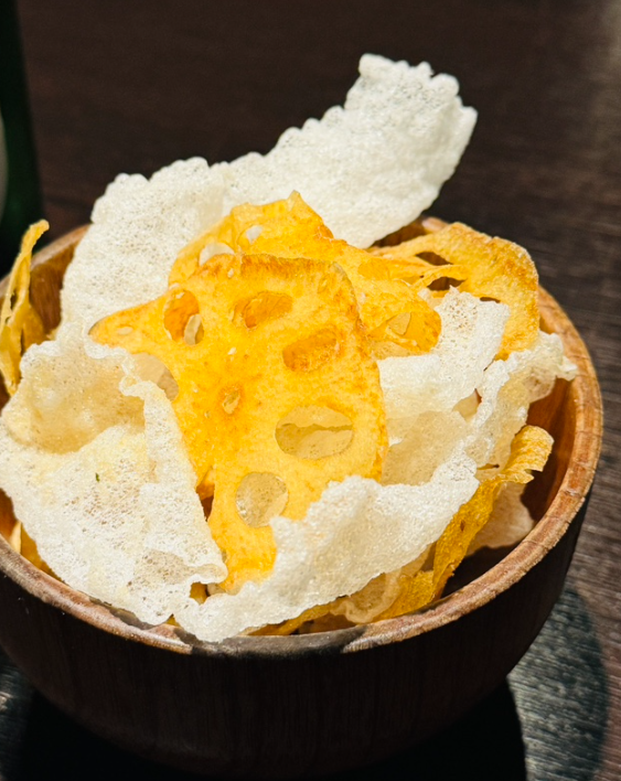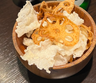 기본 안주: 연근칩 & 알새우칩 – 짭짤하고 바삭해서 리필 두 번은 기본!🤣
