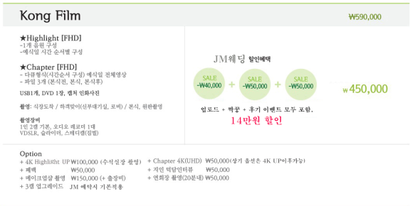 ✔ JM웨딩 제휴 혜택으로 45만 원에 계약 가능!!