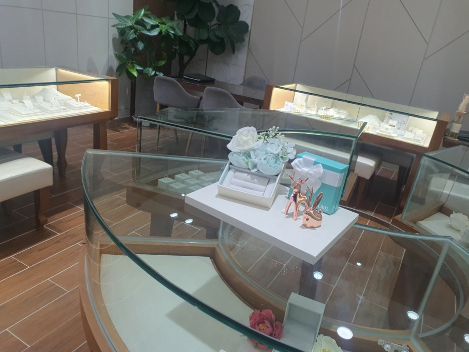매장에 진열된 반지 전부 착용해보면서